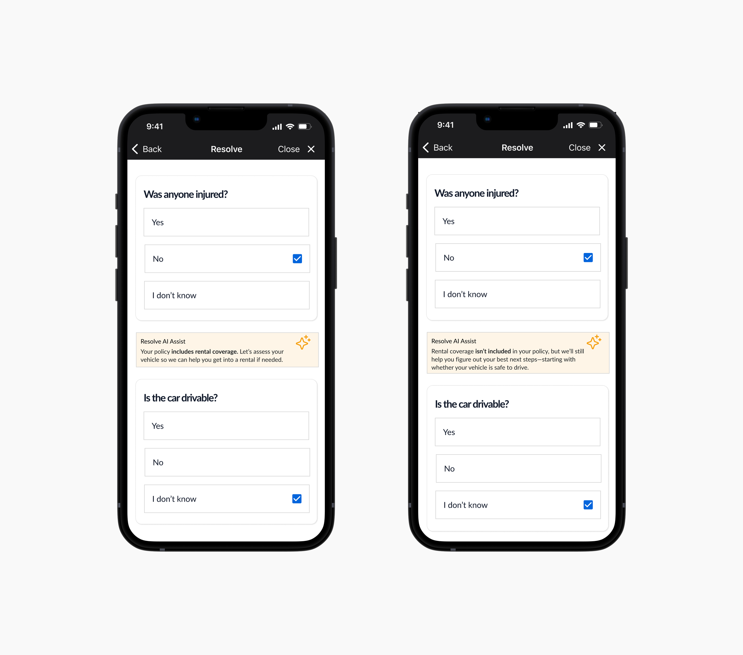From accident to rental car, it guides users through policy checks, photo uploads, and eligibility messaging—reducing delays without sacrificing clarity or control. Most follow-up is handled via SMS, keeping the experience lightweight, transparent, and user-friendly.